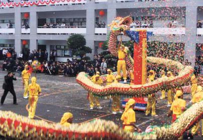 當天早上八點,由協和工商五百名同學以自行車隊組成的「鐵馬群英會」,聲勢浩大的從國父紀念館廣場出發,繞行忠孝東路、松山路、福德街至學校操場,來為整個校慶活動造勢。同學們每經過一個路口,就吸引了大批的民眾駐足觀看,還有民眾對鐵馬隊的同學直喊:「加油!加油!」讓參與同學騎起來也更加有勁,這次領隊的自行車隊隊長程文瑞就笑著說:「這次的活動還比想像中好玩。」負責鐵馬隊的體育組老師林振賢也表示:「其實這個特別的活動主要是帶動全民運動,並以自行車為交通工具,來強健同學們的身心。」 而校慶的表演活動,首先由協和工商儀隊及樂隊演奏氣勢磅礡的樂曲揭開序幕。其後登場的啦啦隊及舞龍、舞獅隊表演,更是不斷為整個校慶活動,掀起一陣陣的驚奇與高潮。尤其是協和工商擁有其他高中職學校所罕見的舞龍、舞獅隊,其精彩、高難度的演出,一點不輸在廟會表演中的專業隊伍,也令在場觀賞的學生及觀眾,看的目不轉睛,不時發出驚嘆聲。而在活動當中,也發生了一段小插曲,在表演舞獅點燃鞭炮時,因為有同學在點燃後走避不及,被鞭炮聲嚇的亂竄,引得在旁圍觀的觀眾一陣爆笑。 除了學校社團、班級的表演外,協和的姐妹校─中華技術學院,也派出國術社精英來演出祝賀,雖然參與演出的同學不多,不過他們熟練的招式與有力、整齊畫一的動作,令人感受到他們虎虎生風的氣勢,也獲得滿場的喝彩。 |