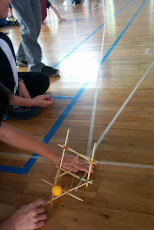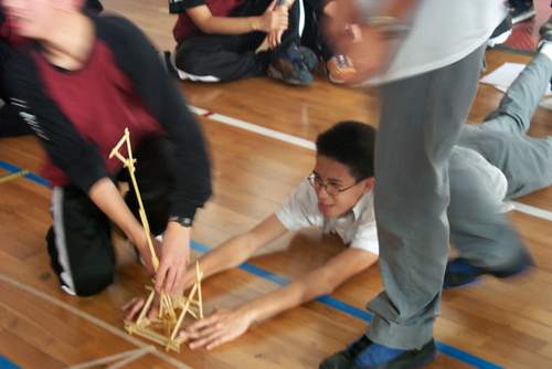 看到同學們玩得如此開心,主辦這次科學趣味競賽的設備組長吳明德表示:「這次比賽是希望同學能以簡單的材料,經過組裝、競賽,而從其中獲得科學的基本知識,並經由團體的合作,來學習如何解決比賽突發的狀況。」不過一說到同學們的表現,吳明德則是笑笑的說:「還有進步的空間。」